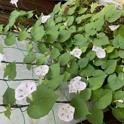 庭には早くも朝顔のミルキーウェイが咲いています。