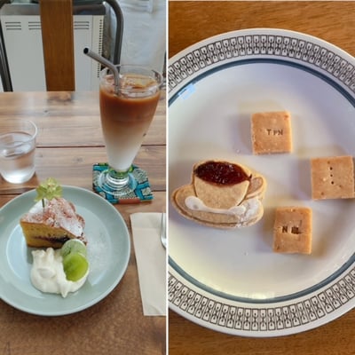 米粉のケーキとアイスカフェオレを頂く