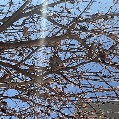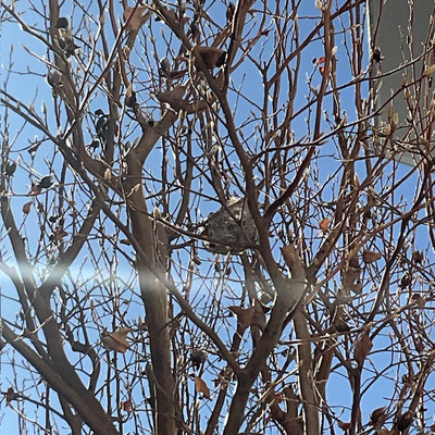 ヒメシャラの葉が落ちて残った巣がよく見えます。