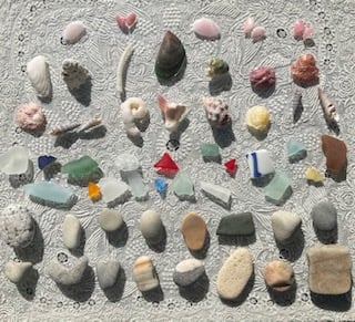 石、シーグラス、貝を拾いました。