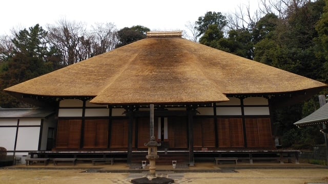 新羽の西方寺の茅葺の屋根が修繕され