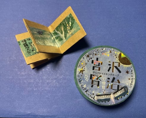 さっそく折り紙で折った本に貼ってみました。