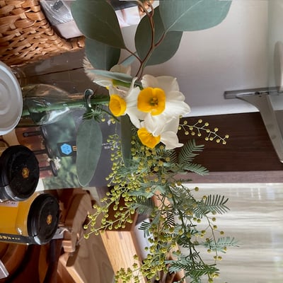 お庭のミモザと水仙を頂きました。
