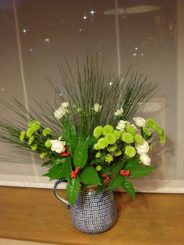 クリスマスの飾りを片づけたらすぐにお正月の飾りつけですが クリスマスに比べ飾るものもないので困ります。 お花に松をプラスしたり干支の馬を置いたりお正月らしく なるといいのですが。 メニューも季節のワッフルの甘いタイプは甘納豆とアンズを入れ 季節のシフォンケーキはきなこと豆乳とゴマが入りお砂糖はきび砂糖...
