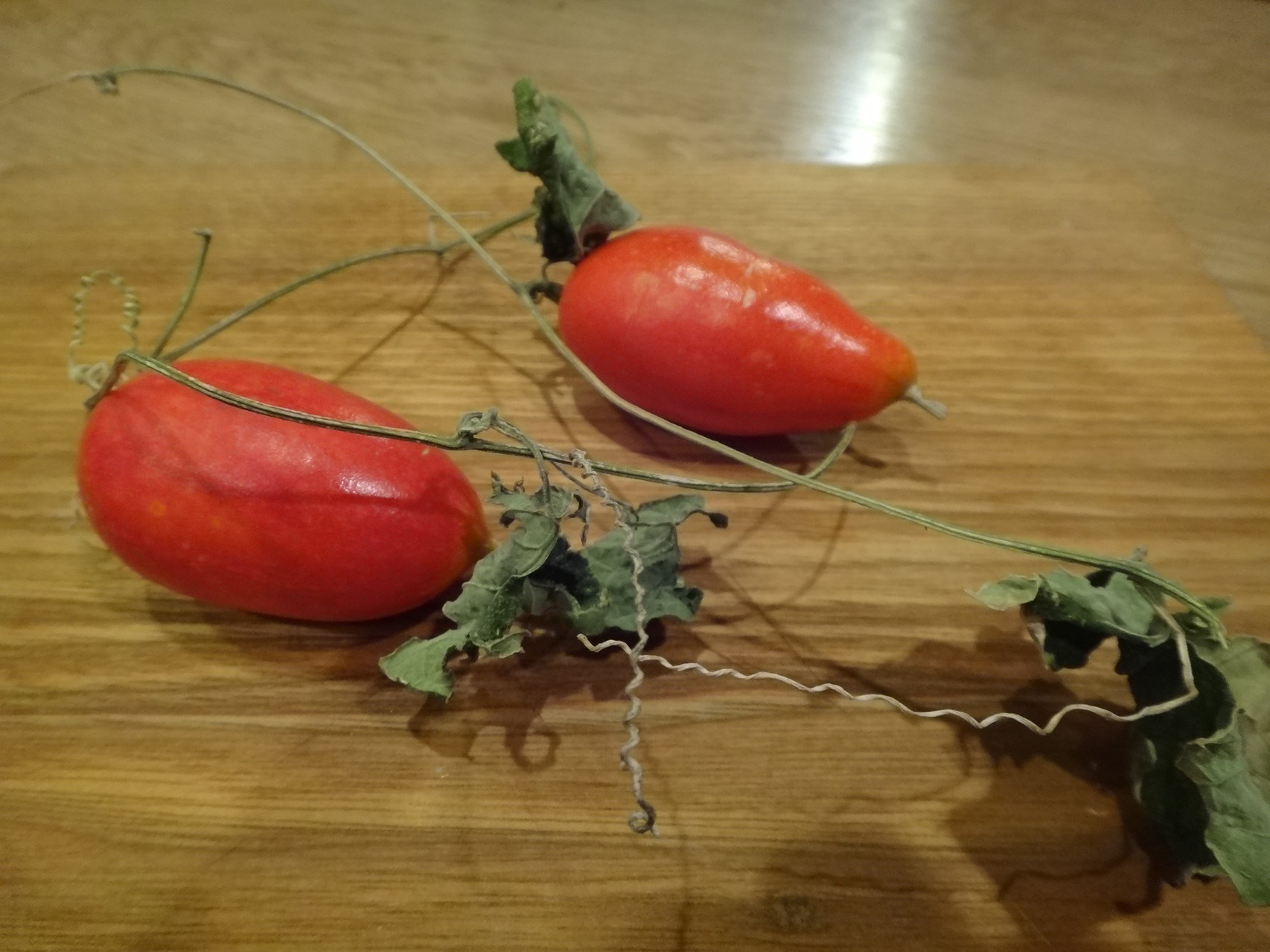 Roofの前の崖にはからすうりがあり夏の夜には白い 美しい花を咲かせましたが今頃はオレンジの実がなっています。 店内に飾っていましたところお客様からめずらしいからとすずめうりの実を頂きました。 散歩をしながら木の実を探すの楽しいです。