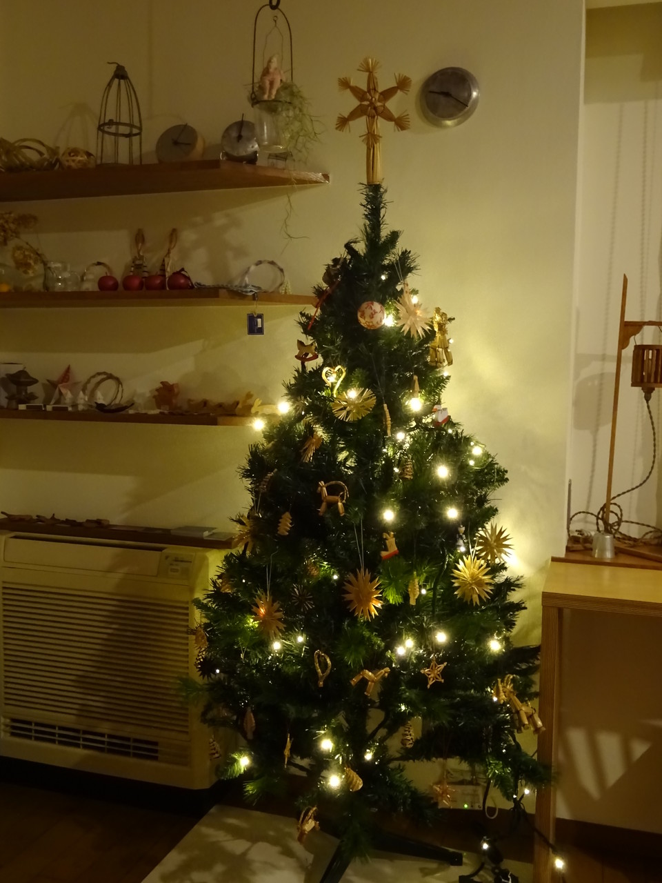 明日からいよいよ12月に入りますのでRoofでもクリスマスツリーを 飾りました。1年に1回ツリーを出して飾りつける作業を30年位やって います。子供達と飾っていた時期もありましたが今はお客様に楽しんで頂く為に一人で飾り付けました。