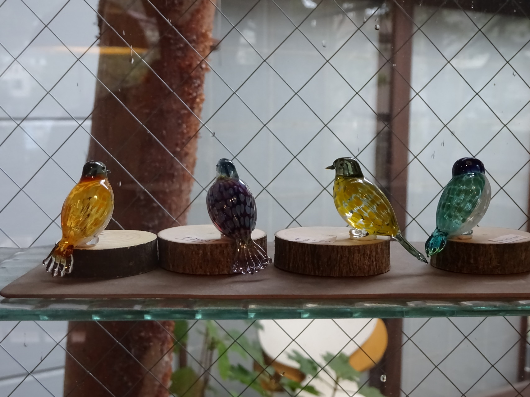 大磯の玉造さんが新作のガラスの鳥を持って来て下さいました。 切り株に止まっている様子の鳥達が新鮮です。 複雑な色と繊細な作りで見惚れてしまいます。 どれも二つとない作品なので気にいった鳥がいましたらお早めに!