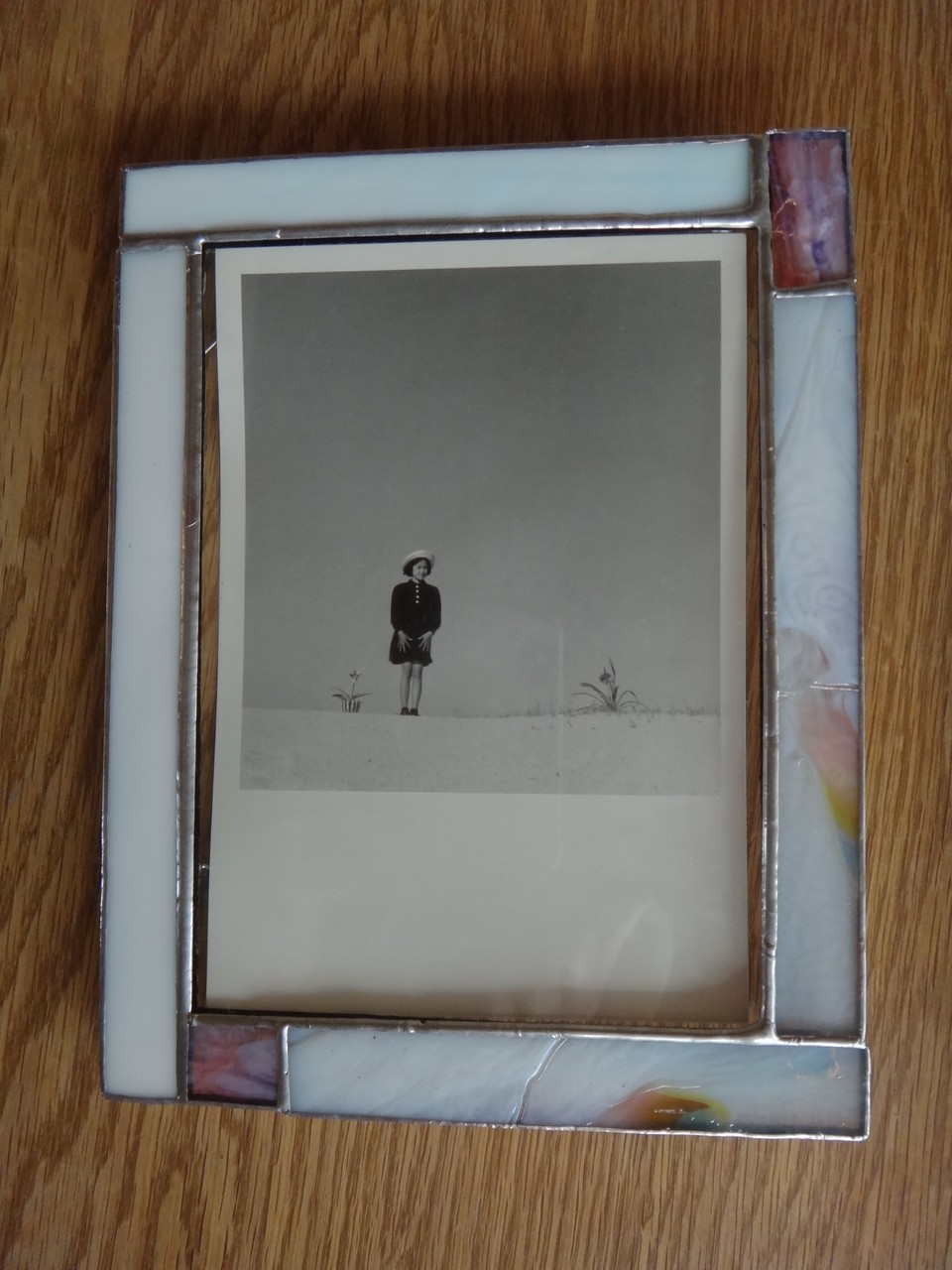 Roofの店内は壁が少ないので絵など掛ける スペースがあまりありませんが上から下げたり 本棚の側面などあちこち色々飾っています。 先日お客様から頂いたステンドグラスの壁掛け は多肉植物を入れ本棚の脇に掛けてあります。