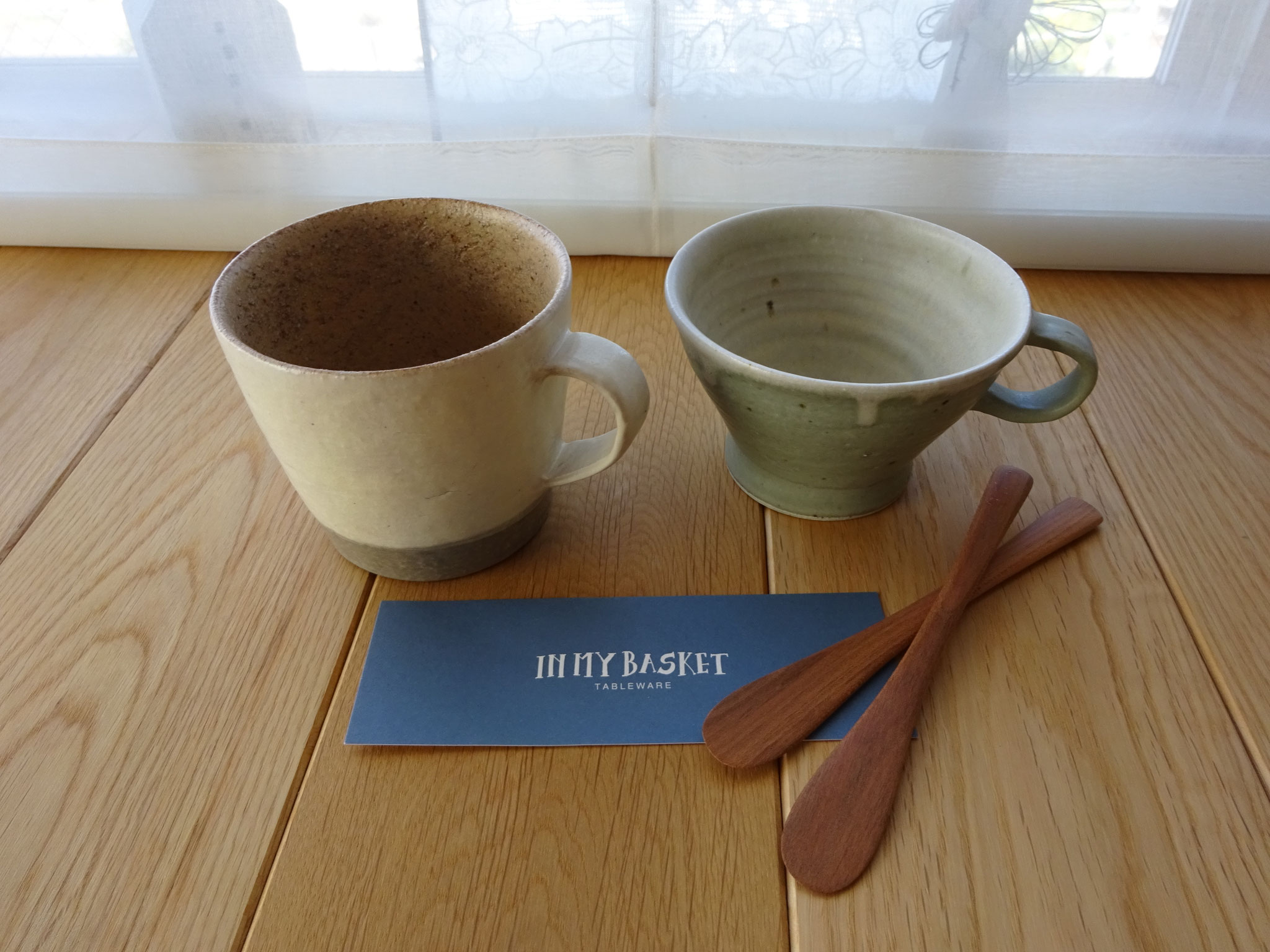 Roof で使っているカップがひびが入ってきてしまい使えなくなってきた ので代わりに新しいカップを探しに田園調布にあるINMYBASKETに行ってきました。 コーヒー用に原田晴子さんのカップとカフェオレやチャイ用に鈴木智子さんの カップを購入しました。 明日からお店で使いたいと思います。