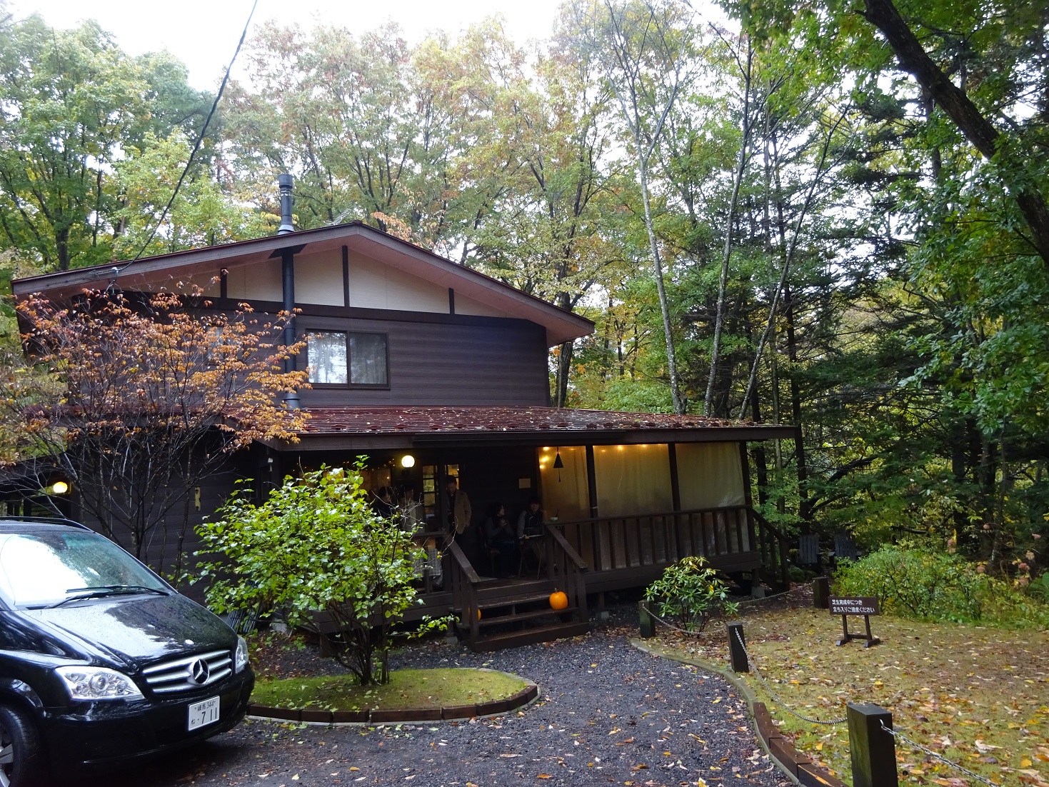 雨の中紅葉を見に軽井沢に行き6時半~12時半まで営業している 「キャボットコーヴ」で朝食を食べました。 8時半頃着いたのですが並んでいるので寒い雨の中20分位待ち やっと暖かいスープの朝食が食べられました。